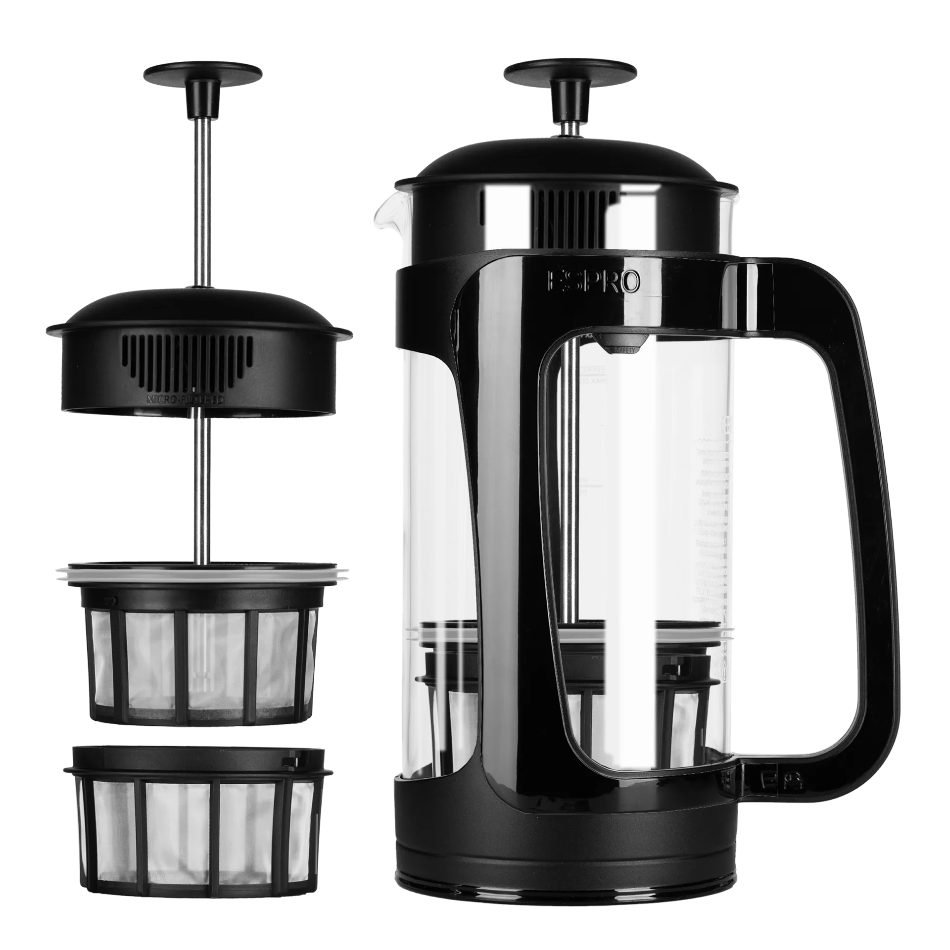 The French press coffee maker with an ultra-efficient double filtration system.