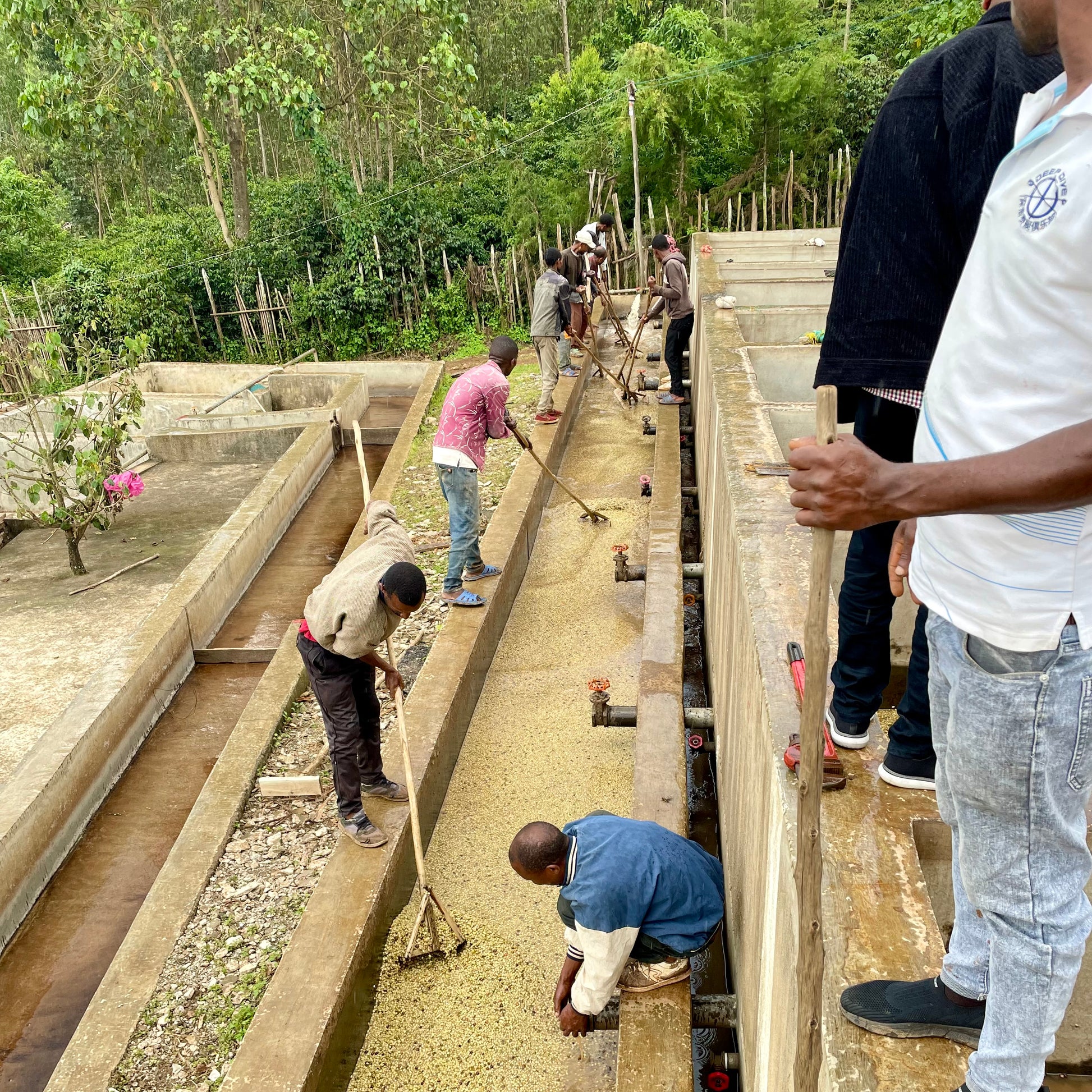 The parchment coffee is then stored locally, before being transported to Addis Ababa where it is deparched, sorted by color using lasers, and then bagged for export.